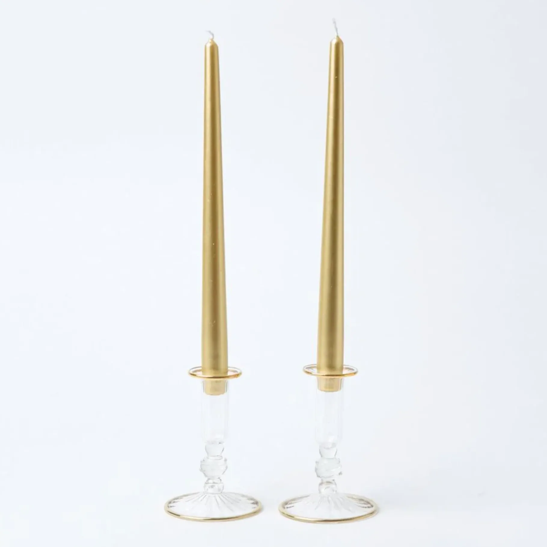This Elegant Pair Of Small Glass Fluted Candle Holders Comes With An Attractive Gold Rim Around The Base And Top. Hand Blown, This Duo Will Look Beautiful Anywhere In Your Home.Pair Them With Our Dotty Candle Holders And Olivia Swans.Size: 10Cm High Due To Their Charming Handblown Nature, The Candleholders Can Differ Slightly In Size And Shape.
