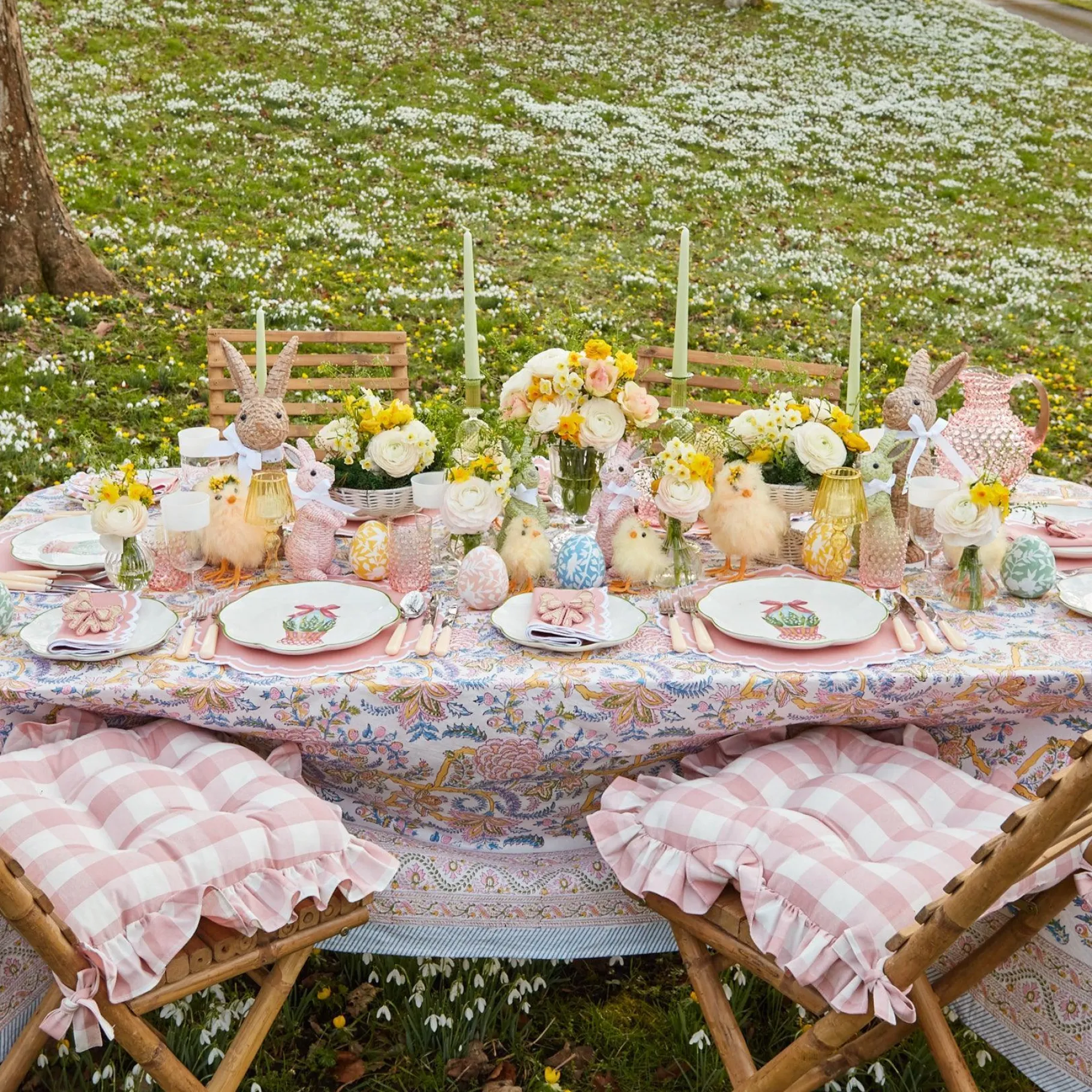 These Delightful Pink Gingham Seat Cushions With Their Frilled Edge, Buttons And Ties Are One Of Alice’s Favourite Pieces For Summer.With Ample Cushioning These Comfortable Seat Pads Look Great Tied With A Sweet Bow On Our Nancy Bamboo Chairs. Adding A Refined Beauty To Your Outside Area Pair Them With Our Lola Tablecloth And Meredith Woven Placemats.Size: 45Cm Wide X 45Cm Long X 5Cm Highmaterials: 100% Cotton
