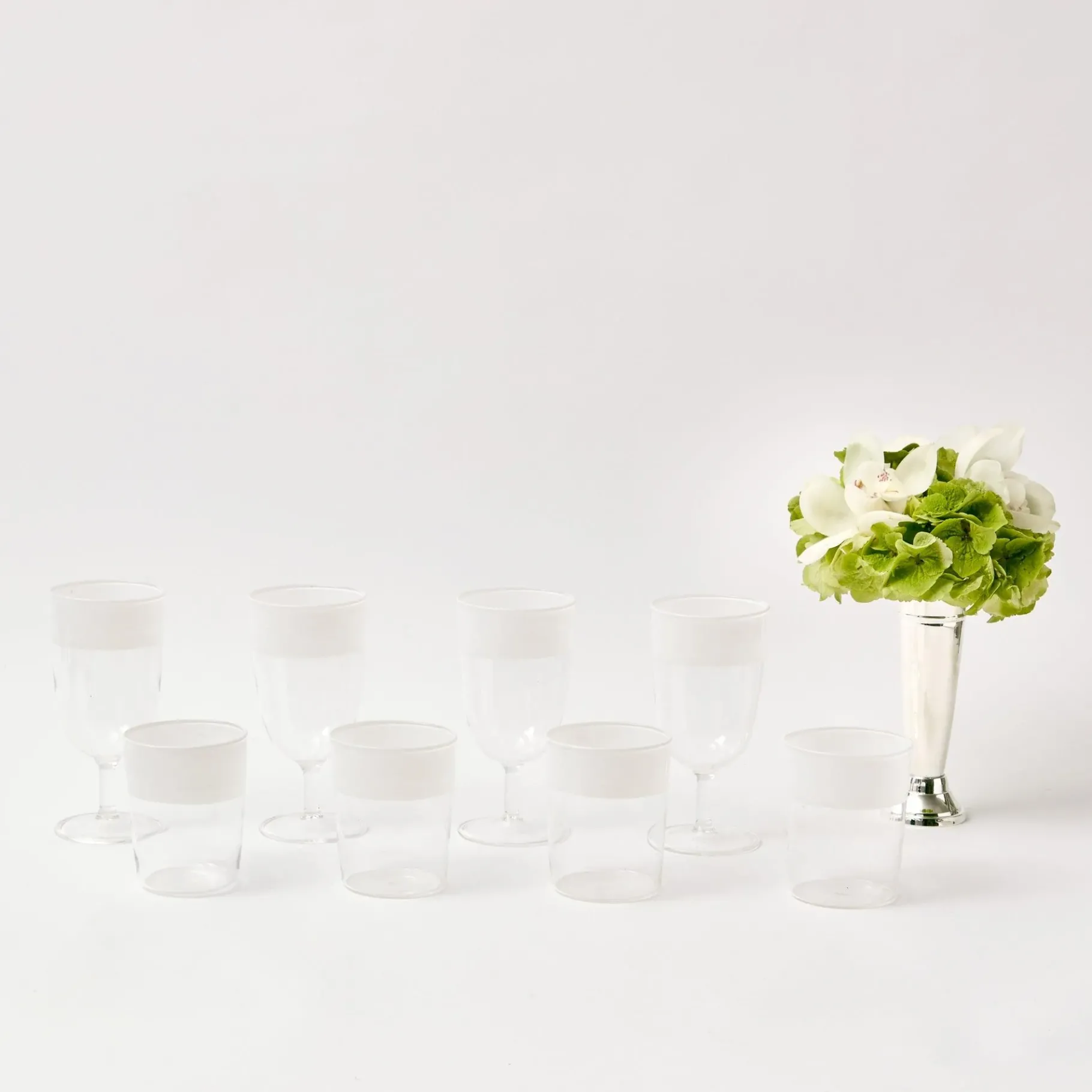 Mrs. Alice Glasses|White Ribbon Water & Wine Glassware Set