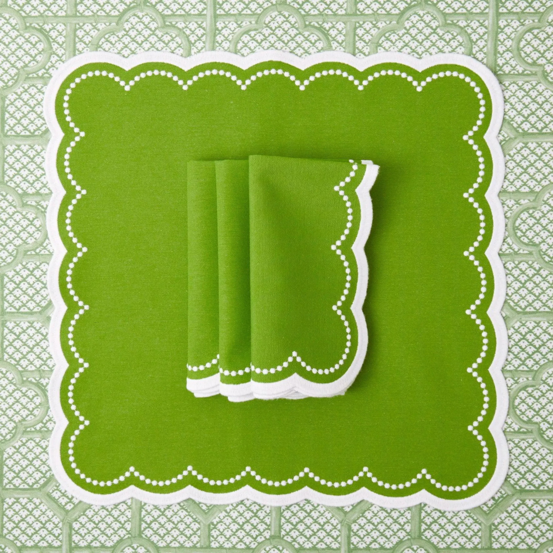 These Classic Cecily Green Napkins Have A Triple Embroidered Edge In An Elegant Scalloped Style.To Complete The Look Pair Them With Our Green Bamboo Trellis Tablecloth, Topiary Dinner Plates, Rattan Chargers & Rattan Cutlery.One Set Includes:X 4 Cecily Green Napkins (40Cm Wide X 40Cm Long)Product Info: 100% Cotton.Care Instructions: Hand Was With Colddo Not Tumble Dryiron On Reverse We Offer The Option To Personally Bespoke Your Napkins With Our Mrs. Alice Monogram Service. If You Would Like To Opt For This, Please Enter Up To 2 Initials In The Box Provided. Please Allow An Extra 7-10 Days From The Time Of Your Order For Monogramming.