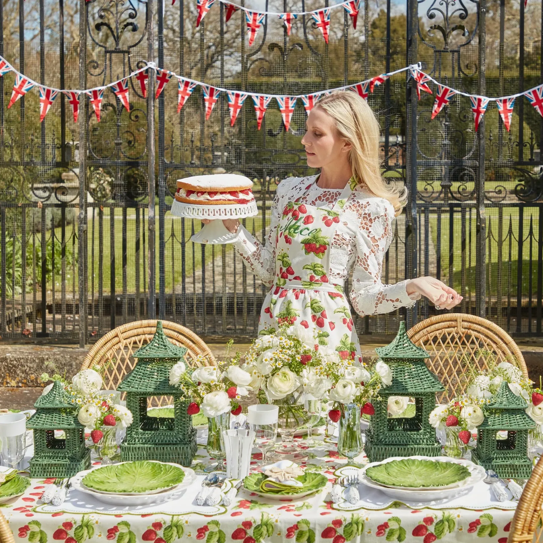 Mrs. Alice Pagodas & Lanterns|Mini Green Rattan Pagoda Lantern (Pair)