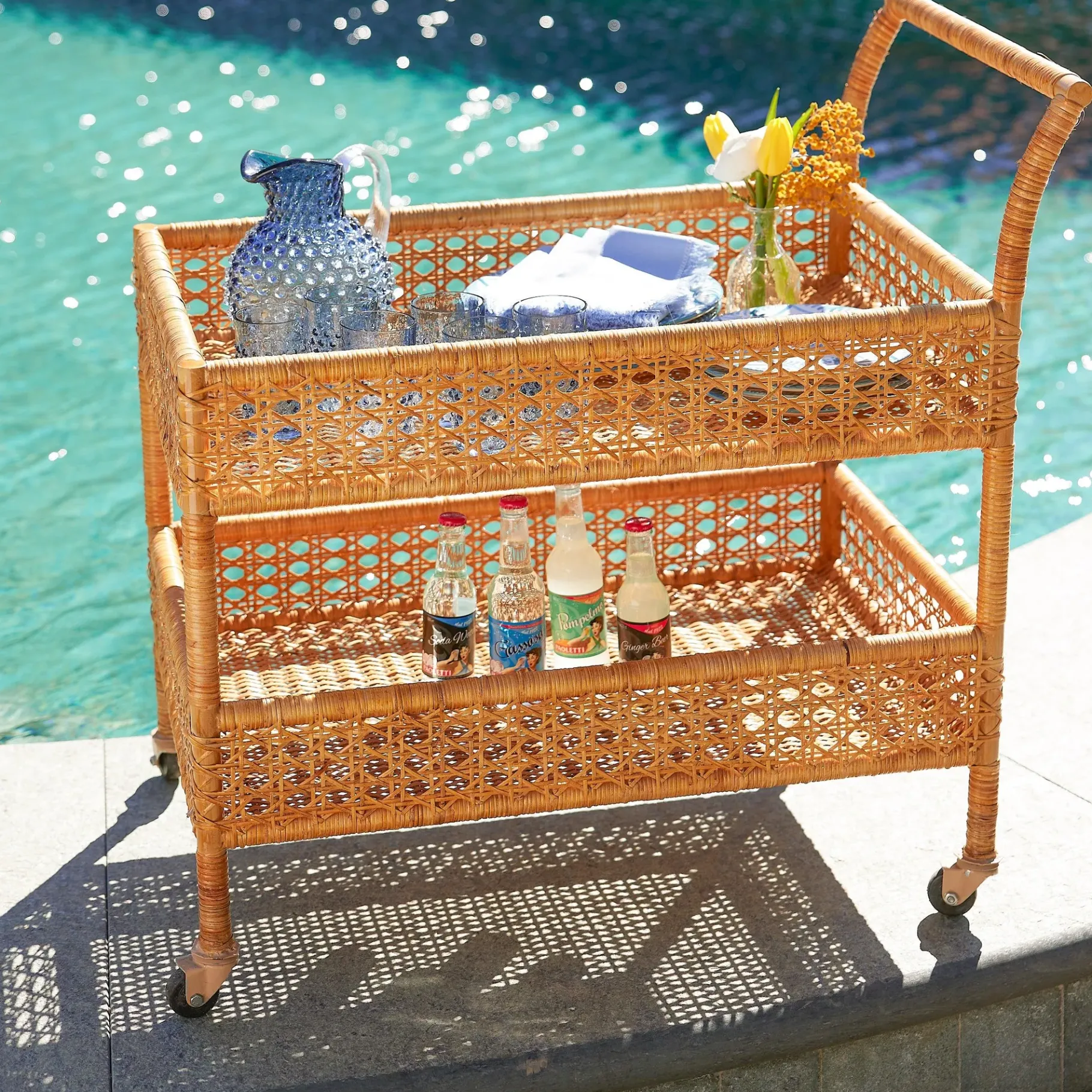 Mrs. Alice Rattan Furniture|Lorenzo Rattan Bar Cart