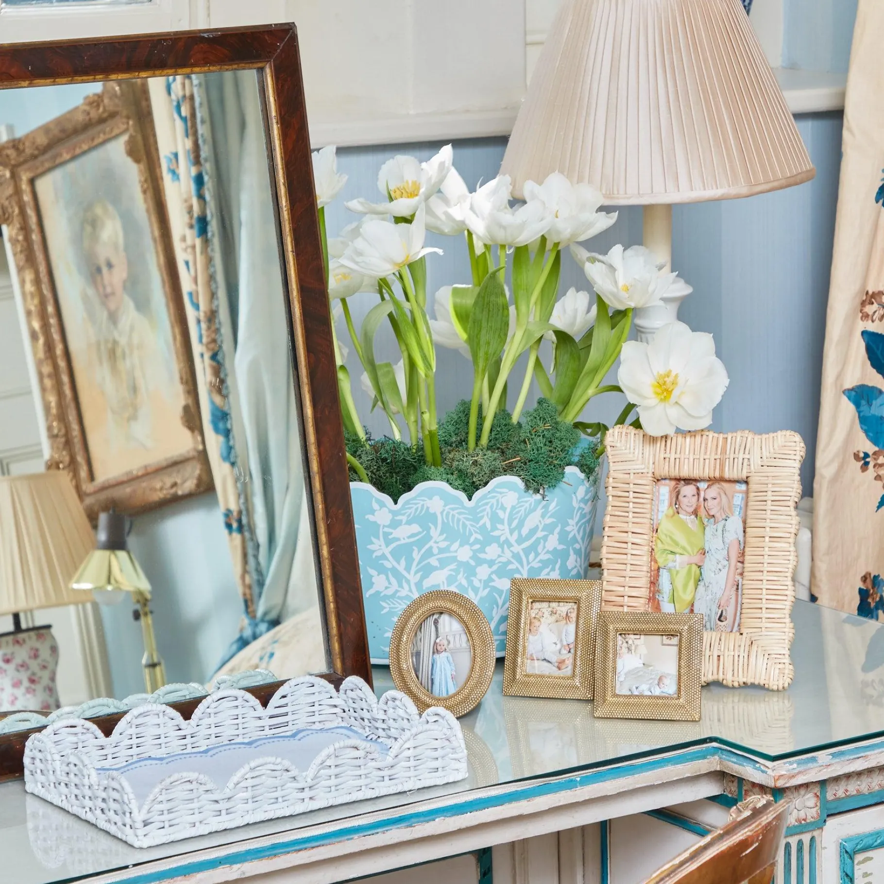 Mrs. Alice Rattan Tableware|White Small Scalloped Rattan Tray