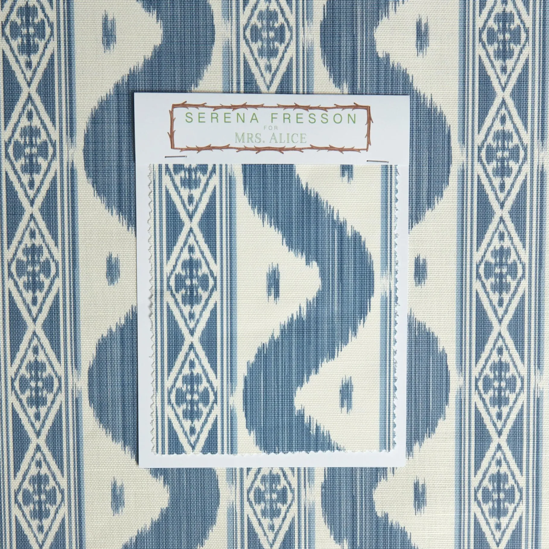 Mrs. Alice Serena Fresson Fabrics|Blue Ikat Stripe Fabric