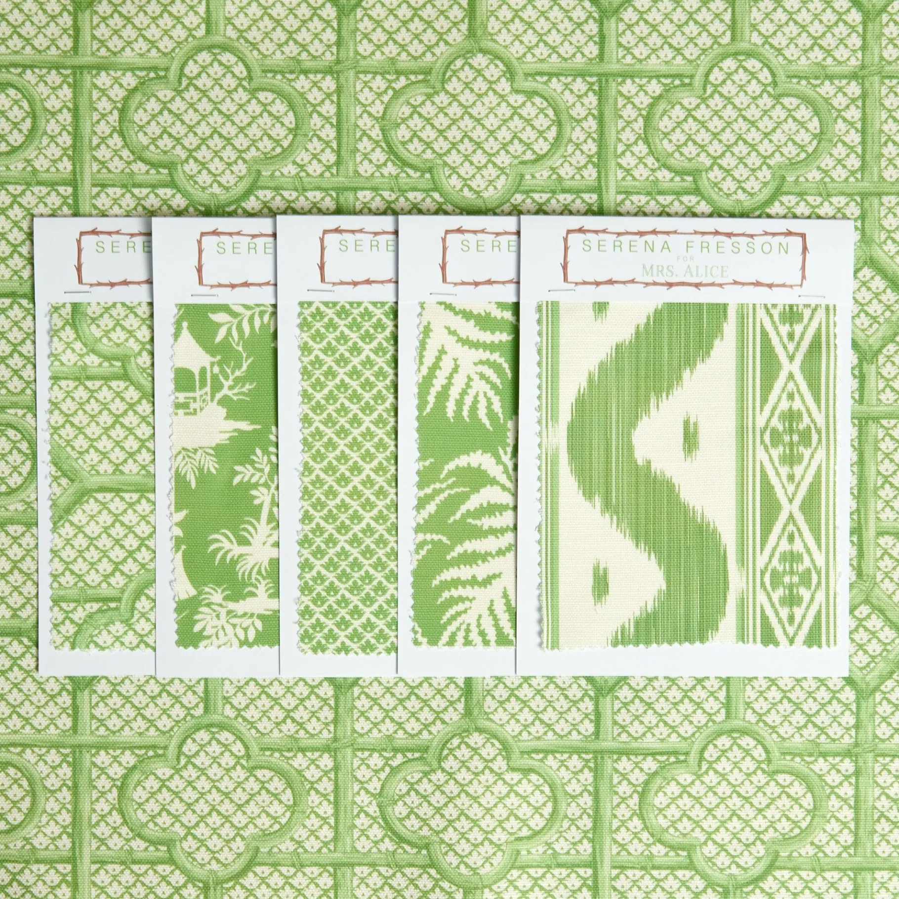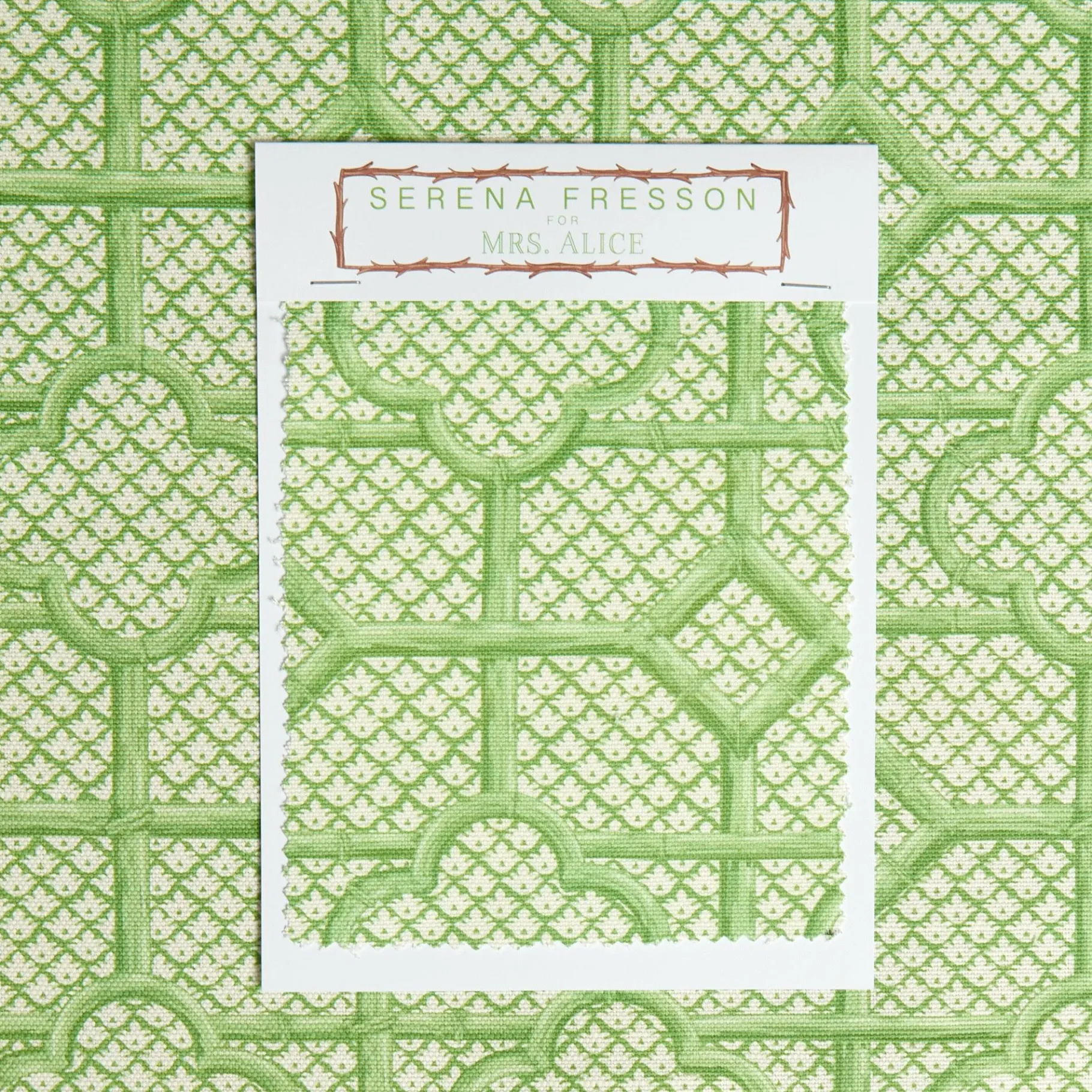 Mrs. Alice Serena Fresson Fabrics|Green Bamboo Trellis Fabric