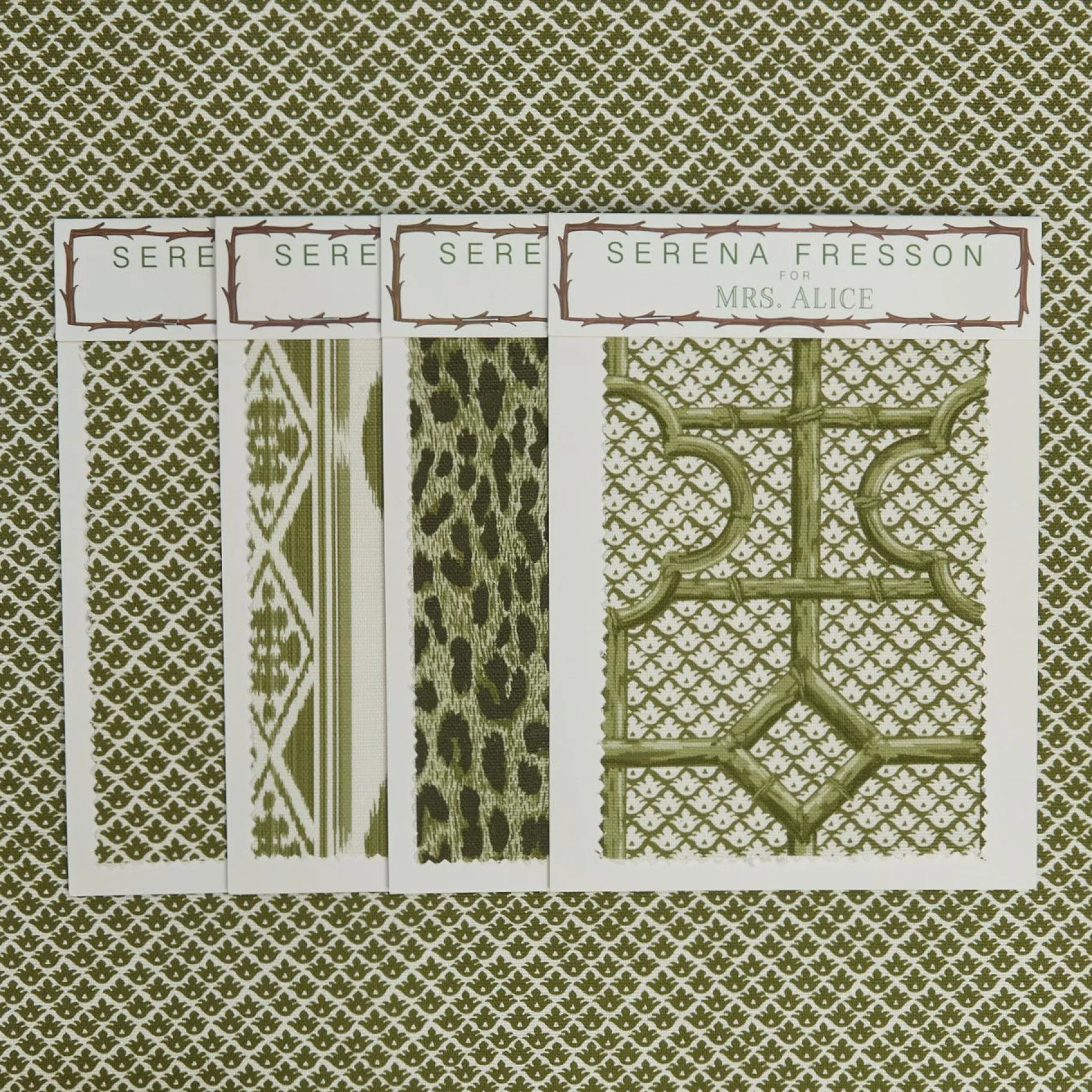 Mrs. Alice Serena Fresson Fabrics|Olive Green Lotus Flower Fabric