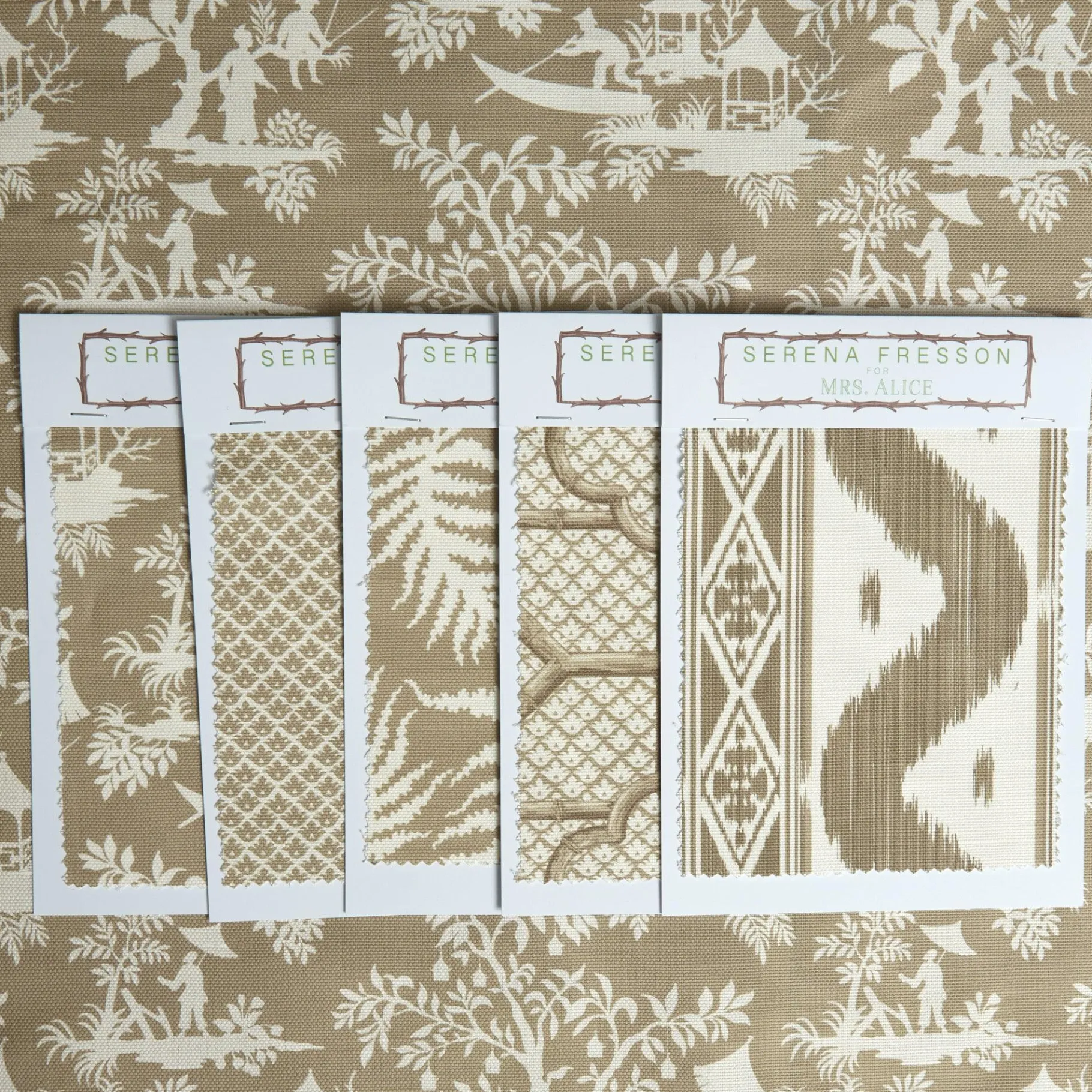 Mrs. Alice Serena Fresson Fabrics|Putty Pagoda Garden Fabric