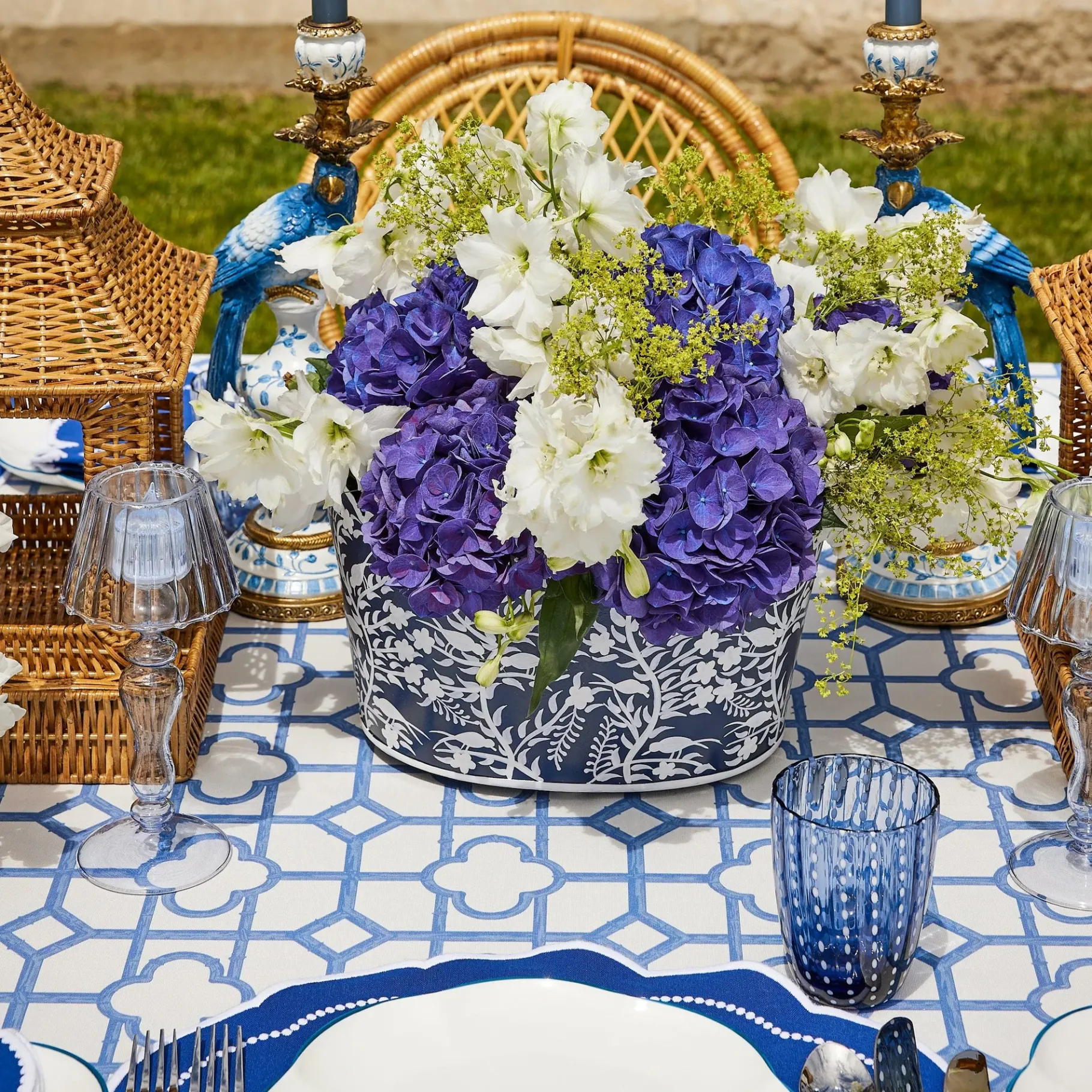 Mrs. Alice Vases|Navy Blue Floral Tole Scalloped Planter