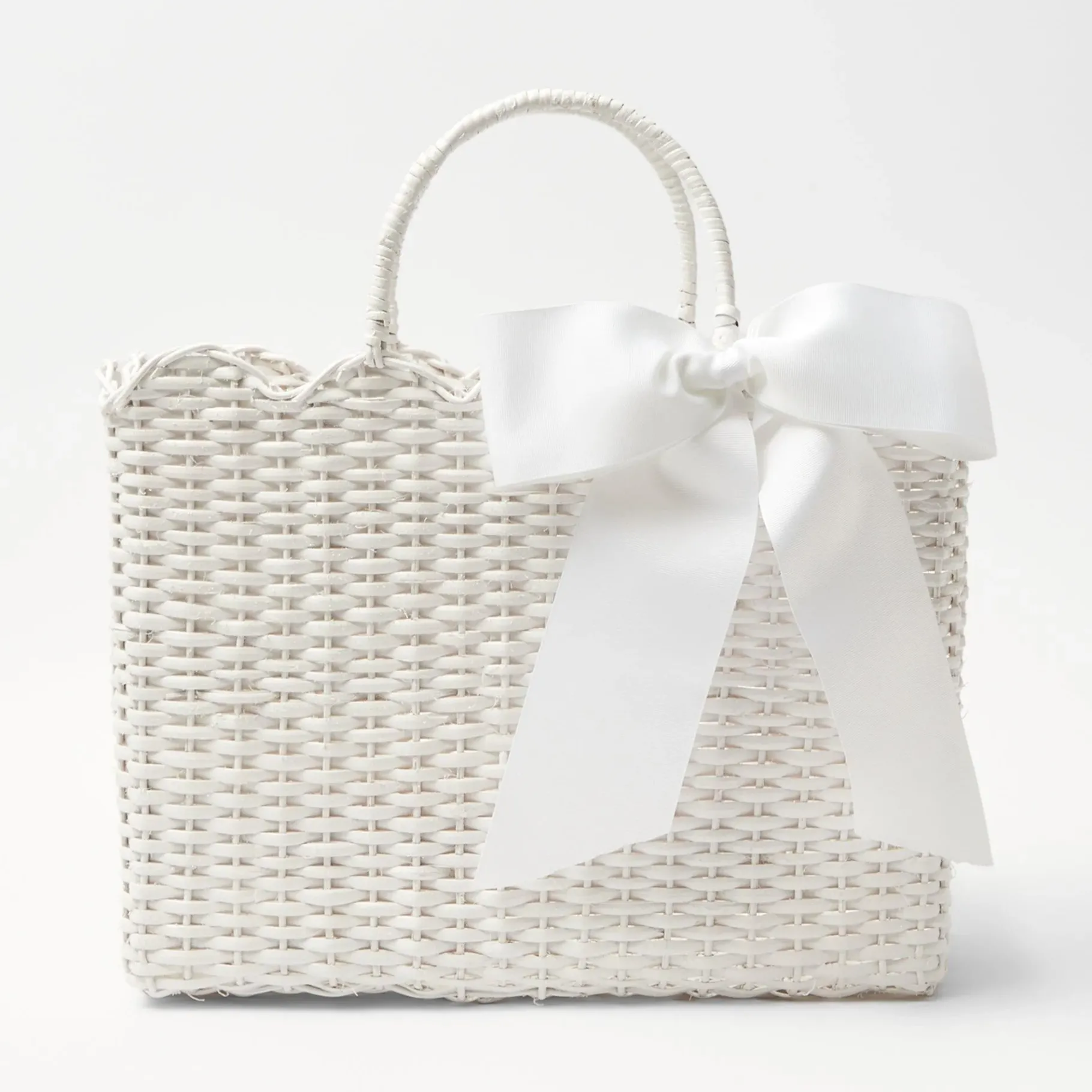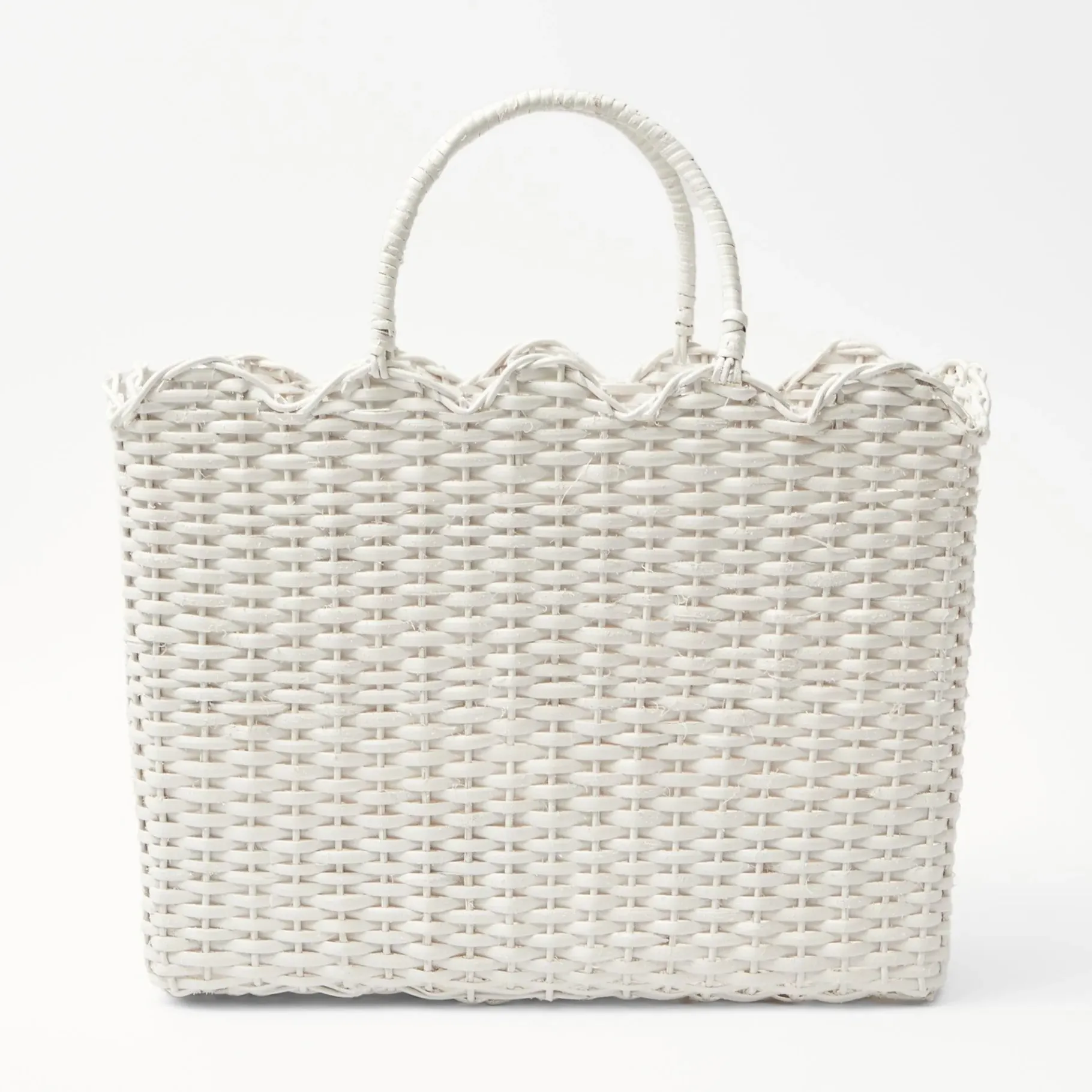 Chic And Scalloped, This Elegant Rattan White Tote Bag Is A Trusty Companion For Daily Life And The Perfect Partner On Holidays Too.Made From A White Rattan Weave, It Comes With A Joyful White Bow. Take It Everywhere, To The Shops, The Beach, It Truly Is… This Summer’s Most Exquisite Accessory.Size: H 35Cm X W 28Cm.