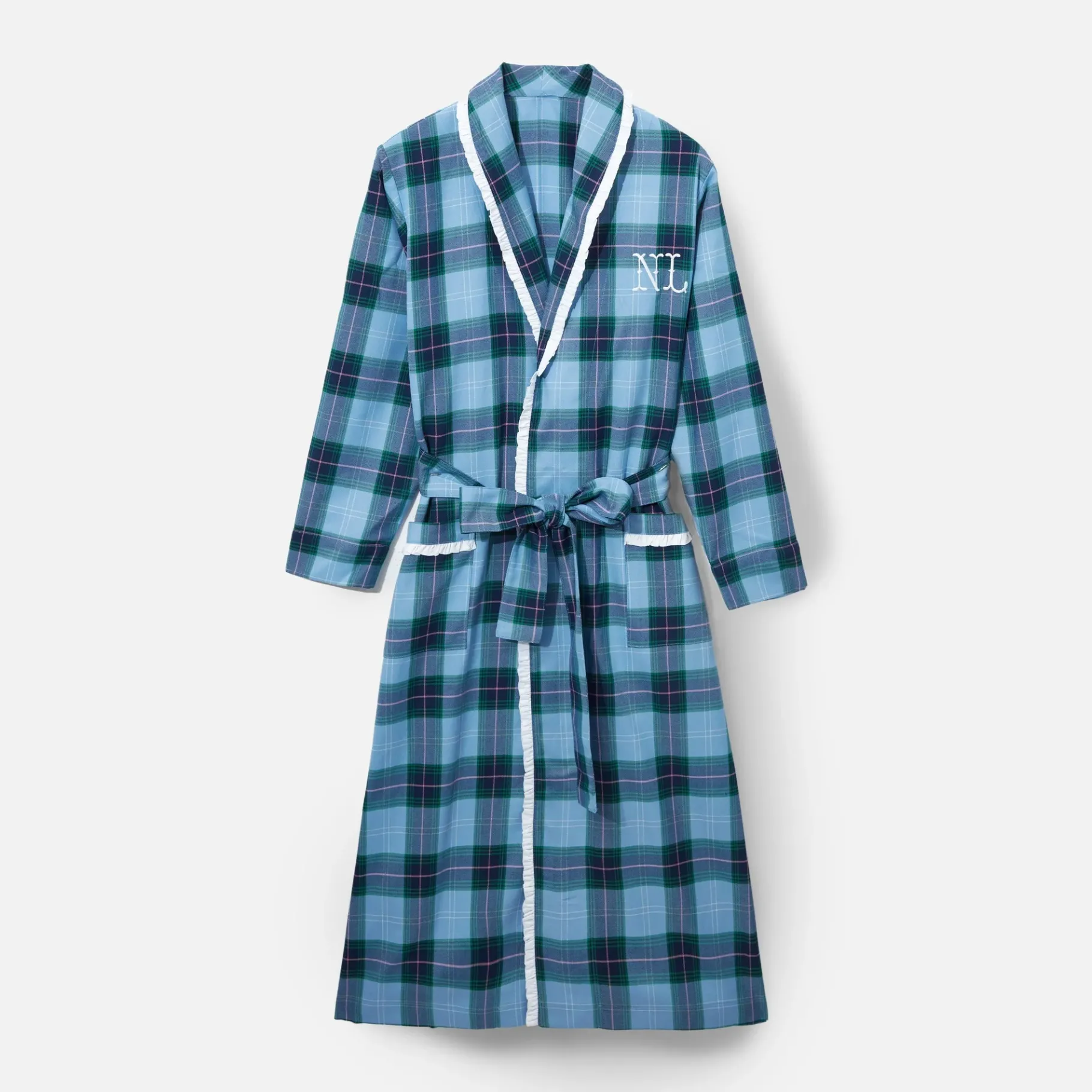 Designed In Blue Tartan This Frilled Dressing Gown Is Just Fabulous.With An Attractive And Traditional Feel, Inspiration For This Piece Came From A Vintage Robe That Serena Has Owned For Decades.Tied With A Sash This New Gown Designed For A Comfortable Fit, Comes In 2 Adult Sizes And A Children’s Size, So All The Family Can Coordinate – Aka Going Matchy Matchy.Sizes:Small/Medium Or Medium/Largeinfo: 100% Cotton. Designed For A Comfortable Fit. Unlined.Dry Clean Only.To Personalise Your Dressing Gown Please Add Up To Ten Characters Into The Box Above. Monogram Option Only Available In A White Thread.