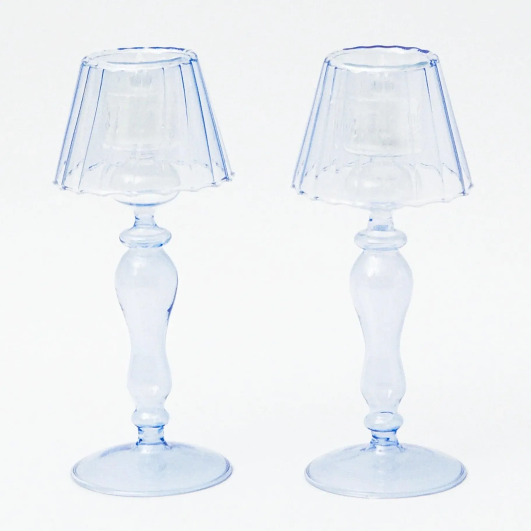 Mrs. Alice Candle Holders|Blue Glass Lantern Tea Light Holders (Pair) – 24Cm