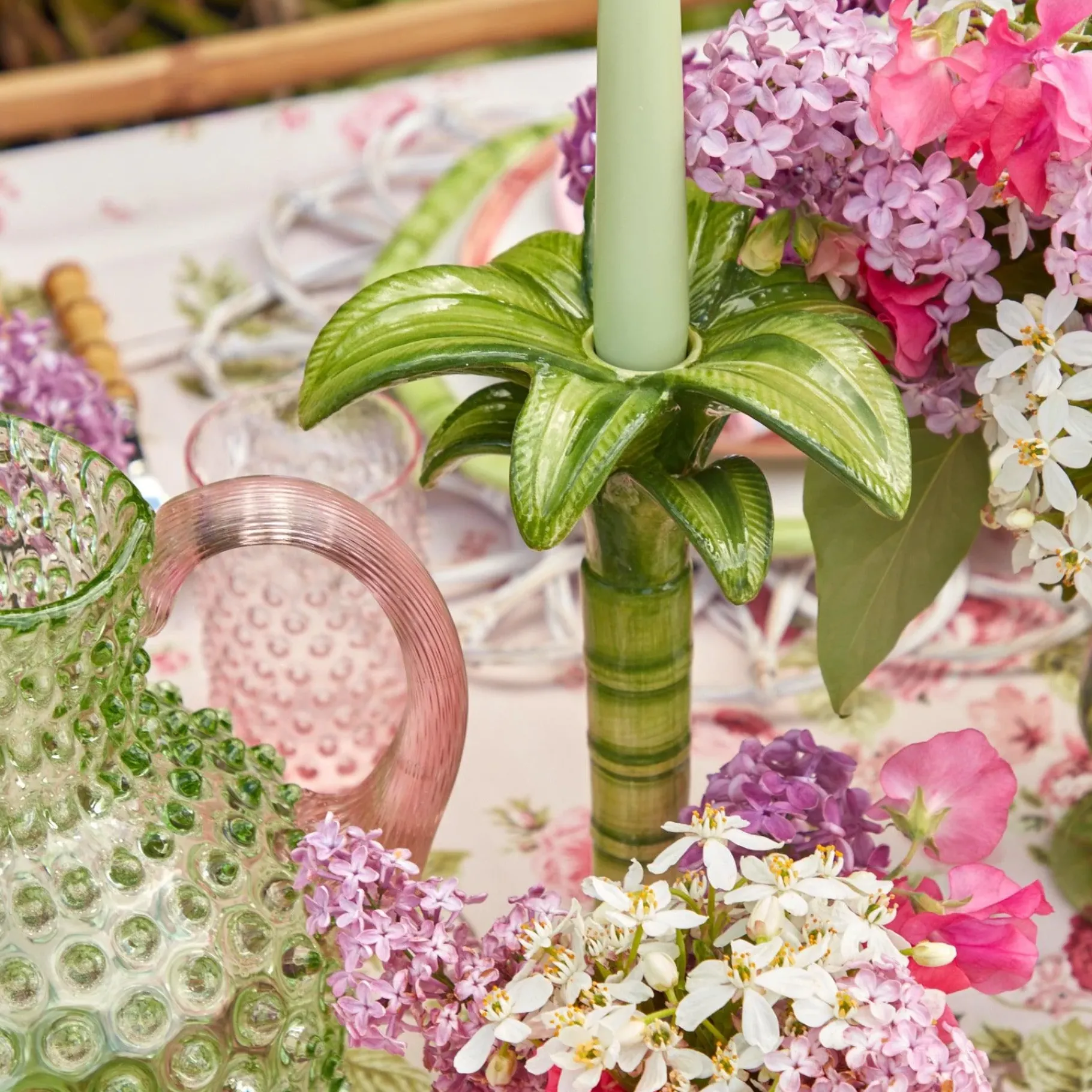 Our Beautiful Large Palm Leaf Candlestick Is A Wonderful Centre Piece To Any Tablescape. Hand Made And Hand Painted In Italy This Is One Of Serena & Alice’s Dream Pieces From The Collection.It Is Pairs Beautifully With Our Spring Green Candles And Looks Perfect Laid On Our Nancy Rose Tablecloth Accompanied By The Small Palm Leaf Candlestick.Limited Quantity.Height: 25 Cm