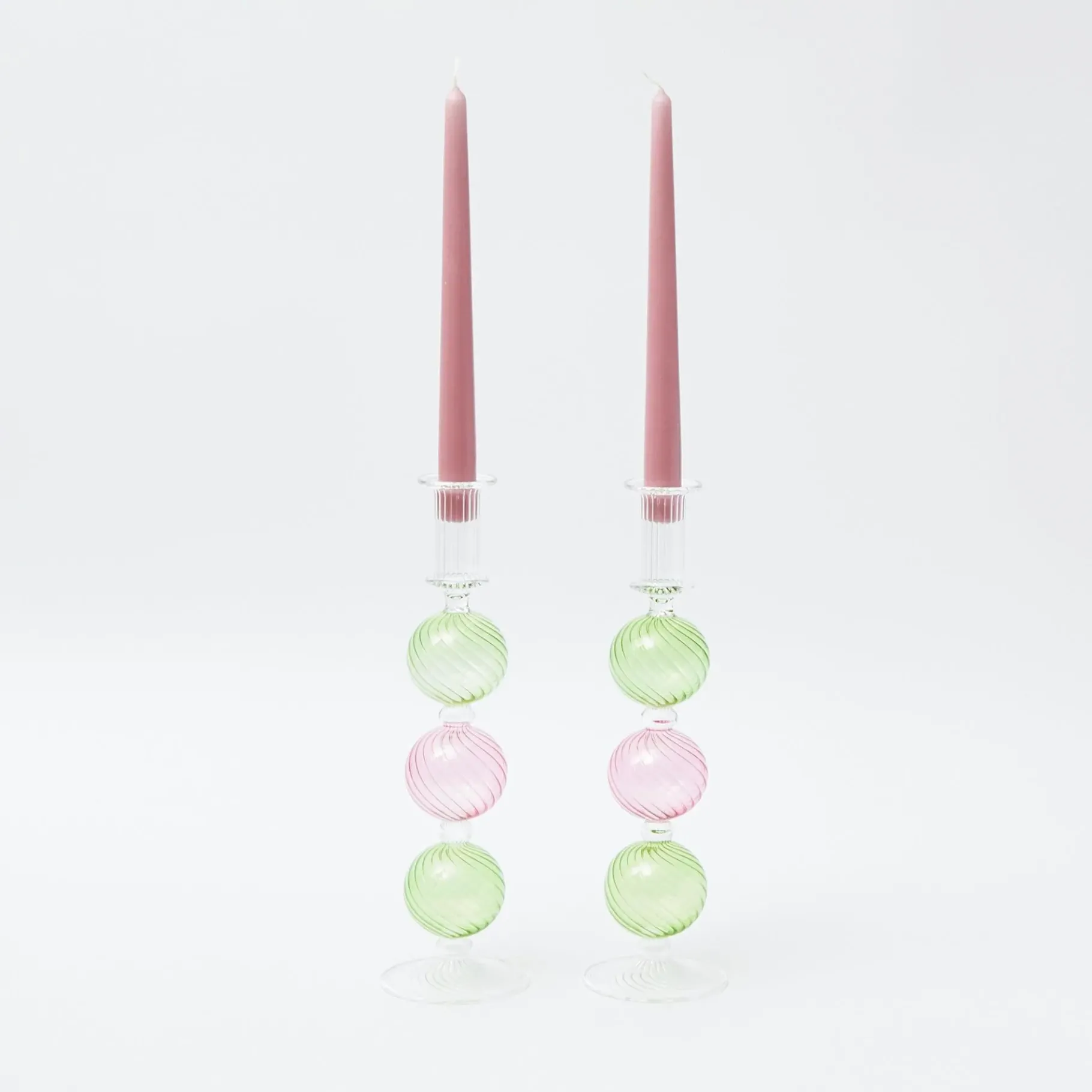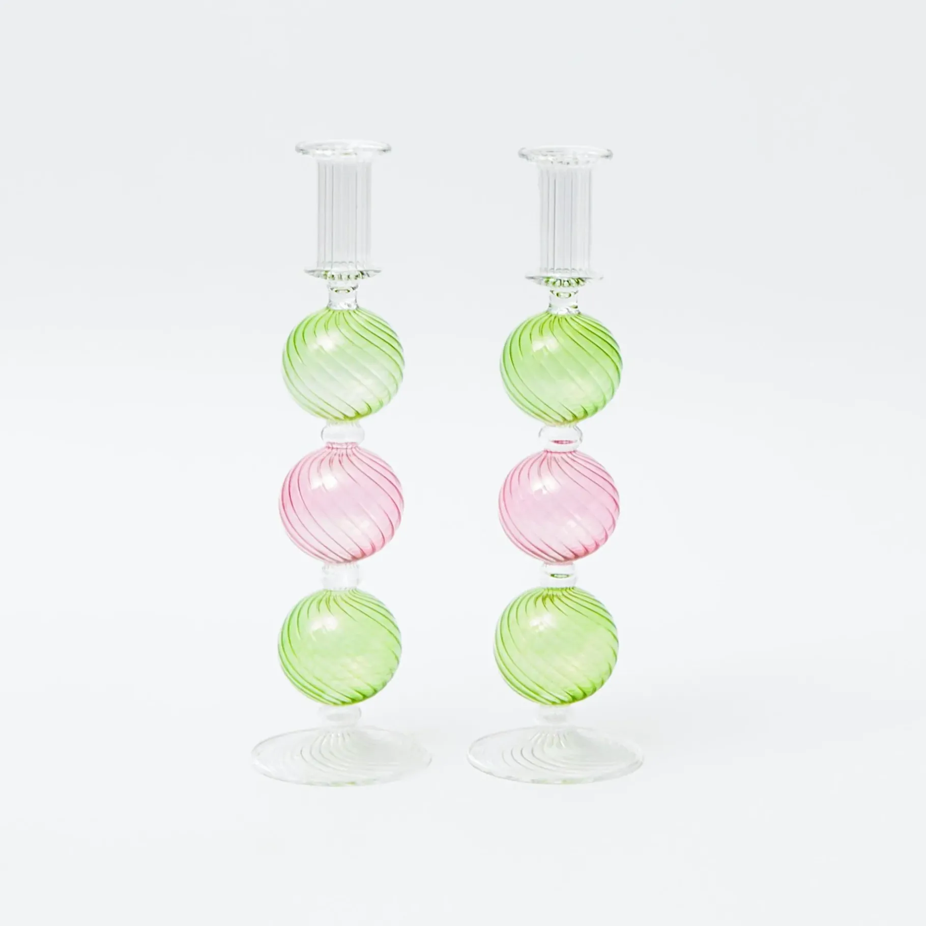 Mrs. Alice Candle Holders|Pink & Green Camille Candle Holder (Pair)