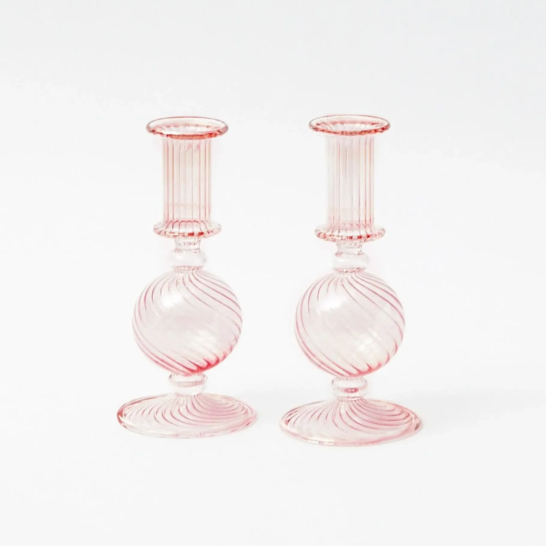 Enjoy This Pair Of Small Camille Peony Candle Holders With Its Hand-Blown Spheres & Delicately Swirled Glass.Produced In A Romantic Shade Of Peony Pink They Can Be Laid With Our Pink Leopard Ikat Tablecloth, Pink Leopard Placemats & Napkins Plus Our Rattan Pagoda Lantern.Set Includes:X2 Small Camille Peony Candle Holder (H 14Cm)Due To Their Charming Handblown Nature, The Candleholders Can Differ Slightly In Size And Shape.Material: Glasscare Instructions: Gently Wipe With A Damp Cloth.