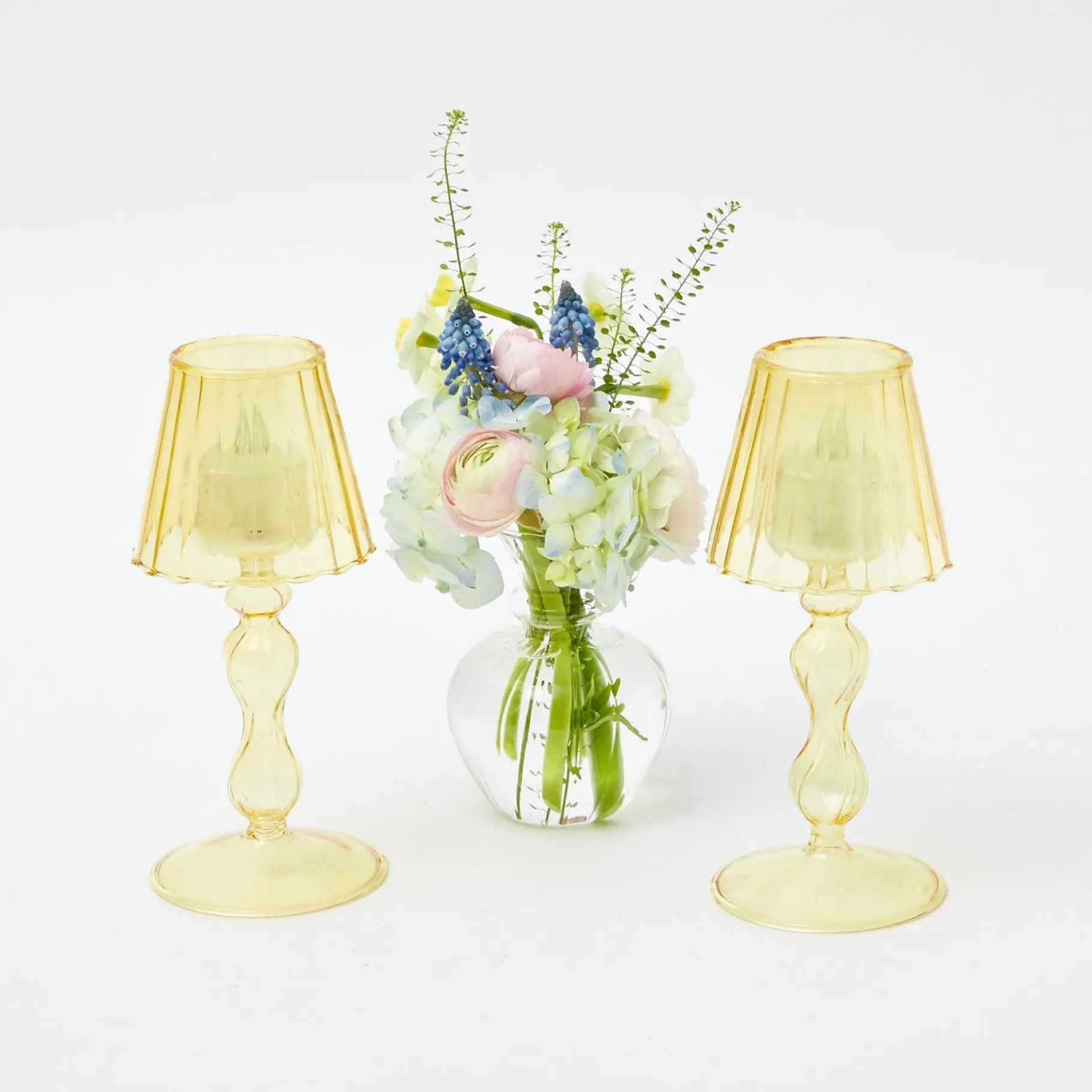Bring The Beauty Of Candlelight To Any Dining Or Kitchen Table With This Impressive And Elegant Candlescape.Featuring Our Large And Small Olive Camille Candle Holders, Green Candles Plus Our Beautiful Yellow Glass Lantern Tea Light Holder, This Set Will Also Work On A Mantlepiece.Pair Them With Our Joy Of Spring Decoration Set, Lola Tablecloth & Scalloped Easter Dinner Plates.Set Includes:X2 Olive Camille Candle Holders (H 30Cm X W 9Cm )X2 Small Olive Camille Candle Holders ( H 16Cm W 9Cm)X2 Yellow Glass Lantern Tea Light Holder ( H 18.5 Cm )X1 Box Of Spring Green Candles (8 Candles)Due To Their Charming Handblown Nature, The Candleholders Can Differ Slightly In Size And Shape.Care Instructions: Hand Wash Using Cold Water.