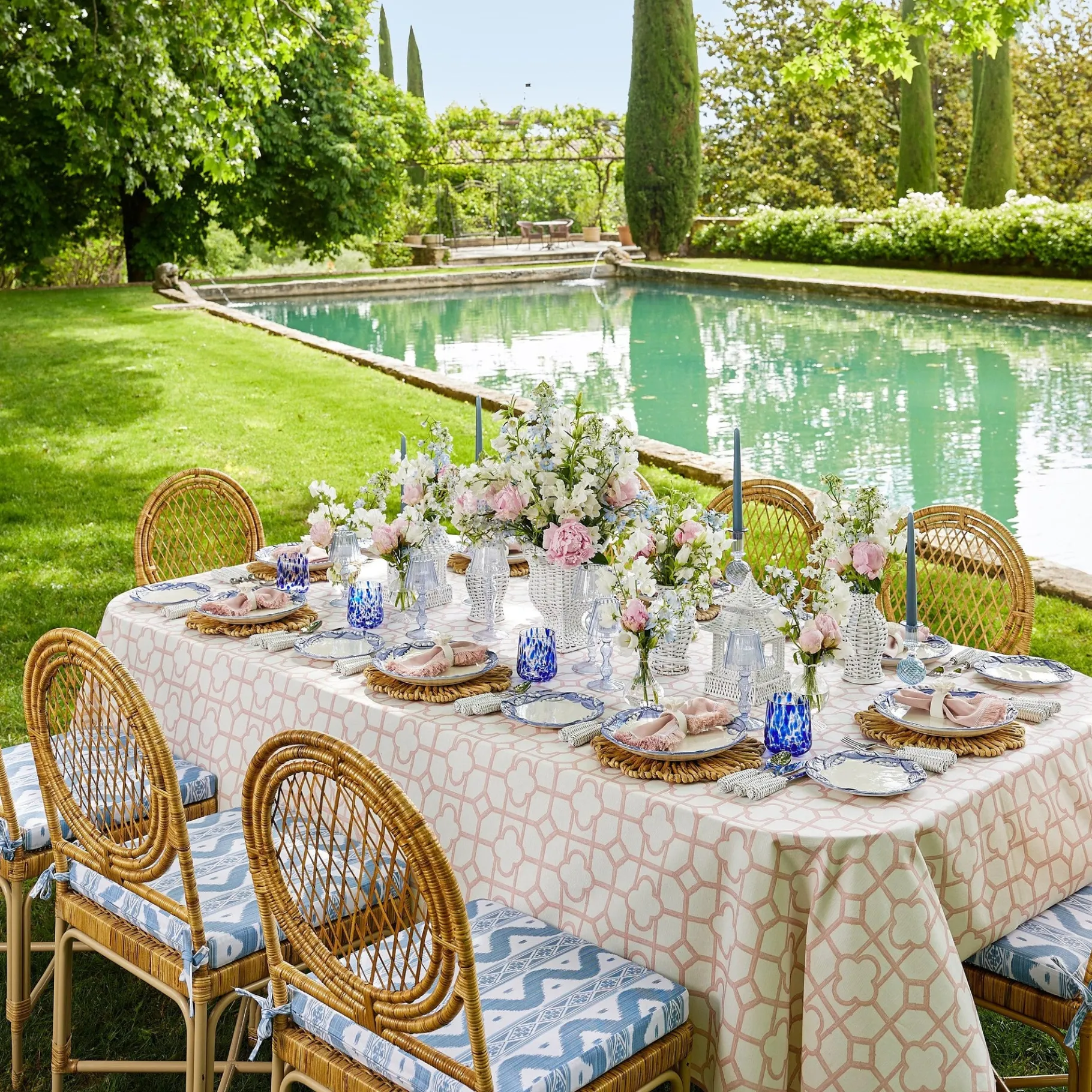 This Pretty Square Seat Pad Cushion Features Our Exclusive Blue Ikat Fabric.With Little Bows To Tie To Any Chair And A Zip At The Back, This Seat Pad Cushion Is Designed To Go With Our Vivienne Rattan Chair, Lilliana Rattan Pedestal & Urn Plus Our Rattan Tray On Stand.Size: H:5Cm W:47Cm L:47Cm Care Instructions: Gently Wipe With A Damp Cloth