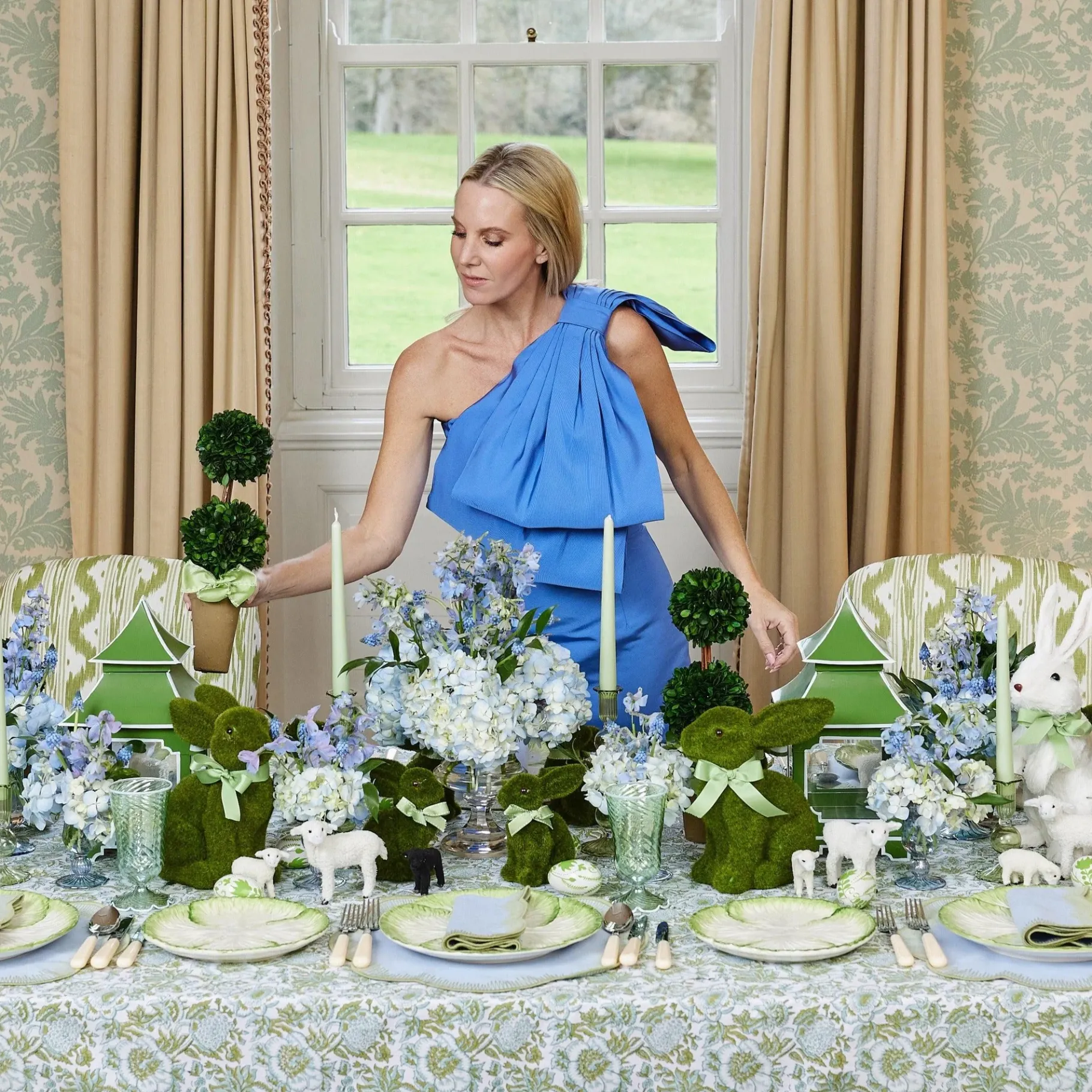 This Impressive Potted Boxwood Decoration Set Will Add Height And Greenery To Any Table. With Terracotta Pots And Ribboned Bowed Box Balls This Set Will Also Look Stylish On A Mantlepiece Or Hall Table. They Will Match With Our Lily Of The Valley Decoration Set, Moss Bunny Pair & Lily Of The Valley Tablecloth.Set:X2 Large Potted Ribboned Boxwood Pair (H 38Cm W 12Cm)X2 Potted Ribboned Boxwood Pair ( H 26Cm W 10Cm)X4 Green Saddle Stitch Bows ( H 9Cm X W 12Cm)