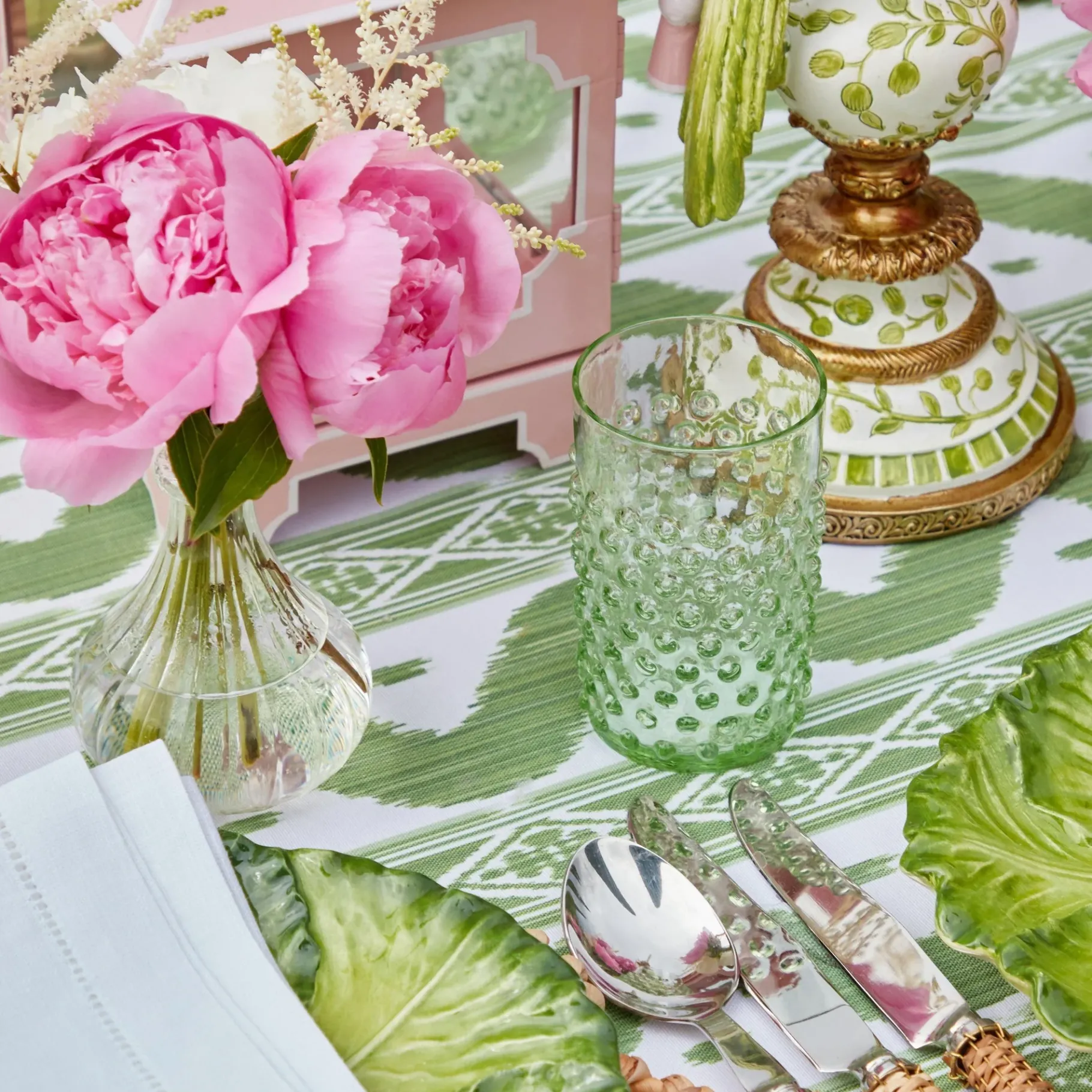 Our Emerald Hobnail Jug With A Beautiful Rose Pink Handle Has Been Designed Exclusively For Mrs. Alice.With Chic Studded Design And Reassuring Weight, This Unique Set Will Make A Beautiful Statement On Any Spring Table.Coming With 6 Emerald Glasses, This Set Works Well Alongside Our Pink Capri Plates And Nancy Rose Tablecloth. Product Size:Jug: 22Cm High X 17Cm Wideglasses: 12Cm High X 8Cm Widedishwasher Safe.
