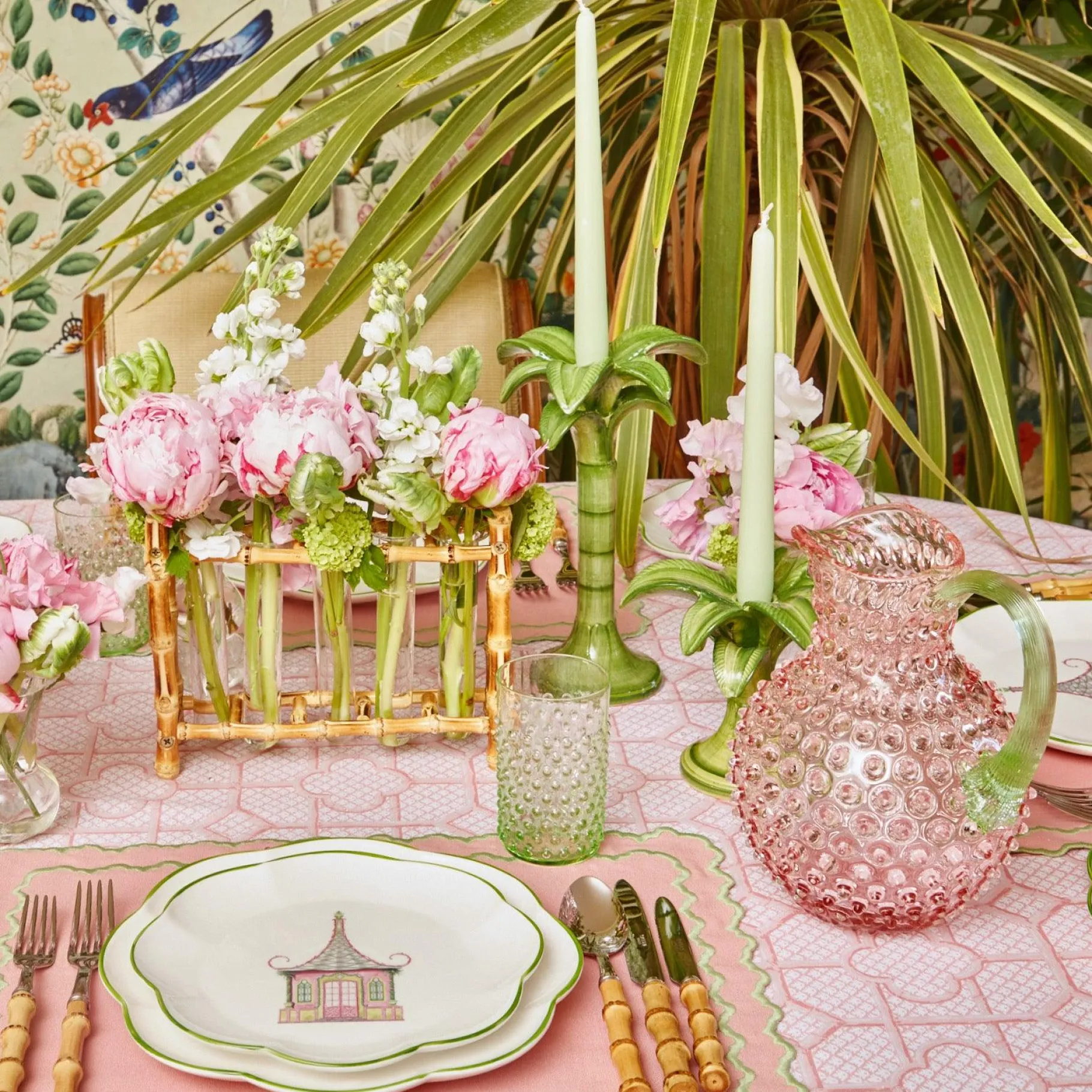 Our Rose Hobnail Jug With A Beautiful Emerald Handle Has Been Designed Exclusively For Mrs. Alice.Made Of Crystal Glass, This Unique Jug Will Make A Beautiful Statement On Any Table. It Can Be Accompanied By Our Rose Pink Hobnail Glasses, Our Green & Pink Pagoda Plates And Pink Bamboo Trellis Tablecloth.Size: 22Cm High X 17Cm Widecapacity: 2 Litresdishwasher Safe.
