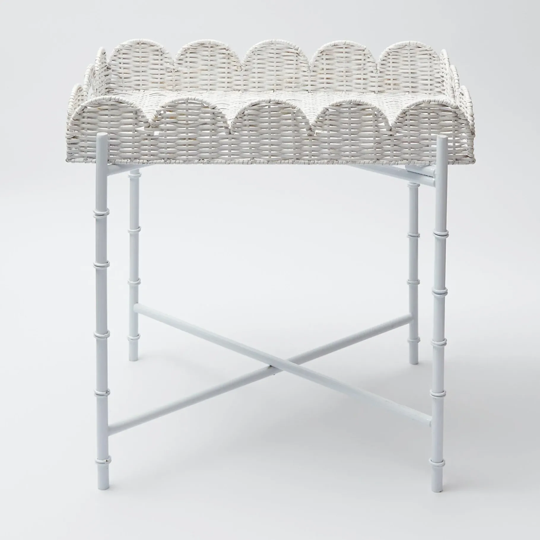 Mrs. Alice Rattan Furniture|White Scalloped Rattan Tray With Stand