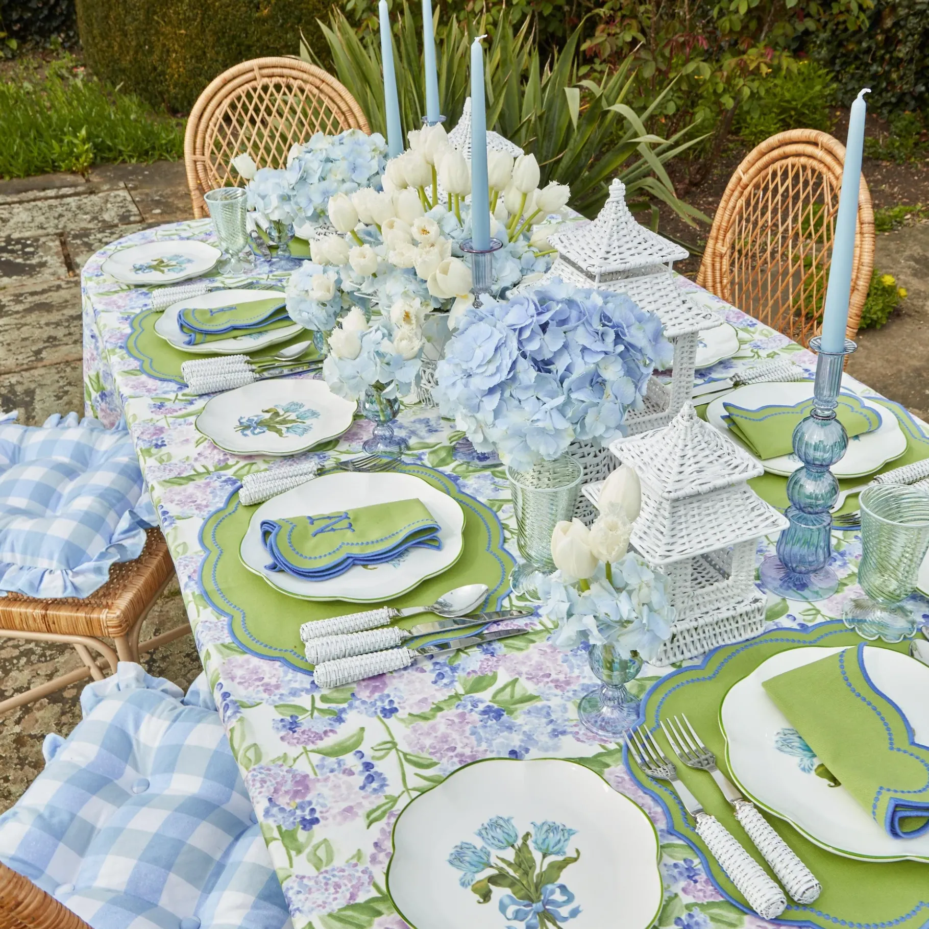 Mrs. Alice Rattan Tableware|White Rattan Pagoda Lantern Set