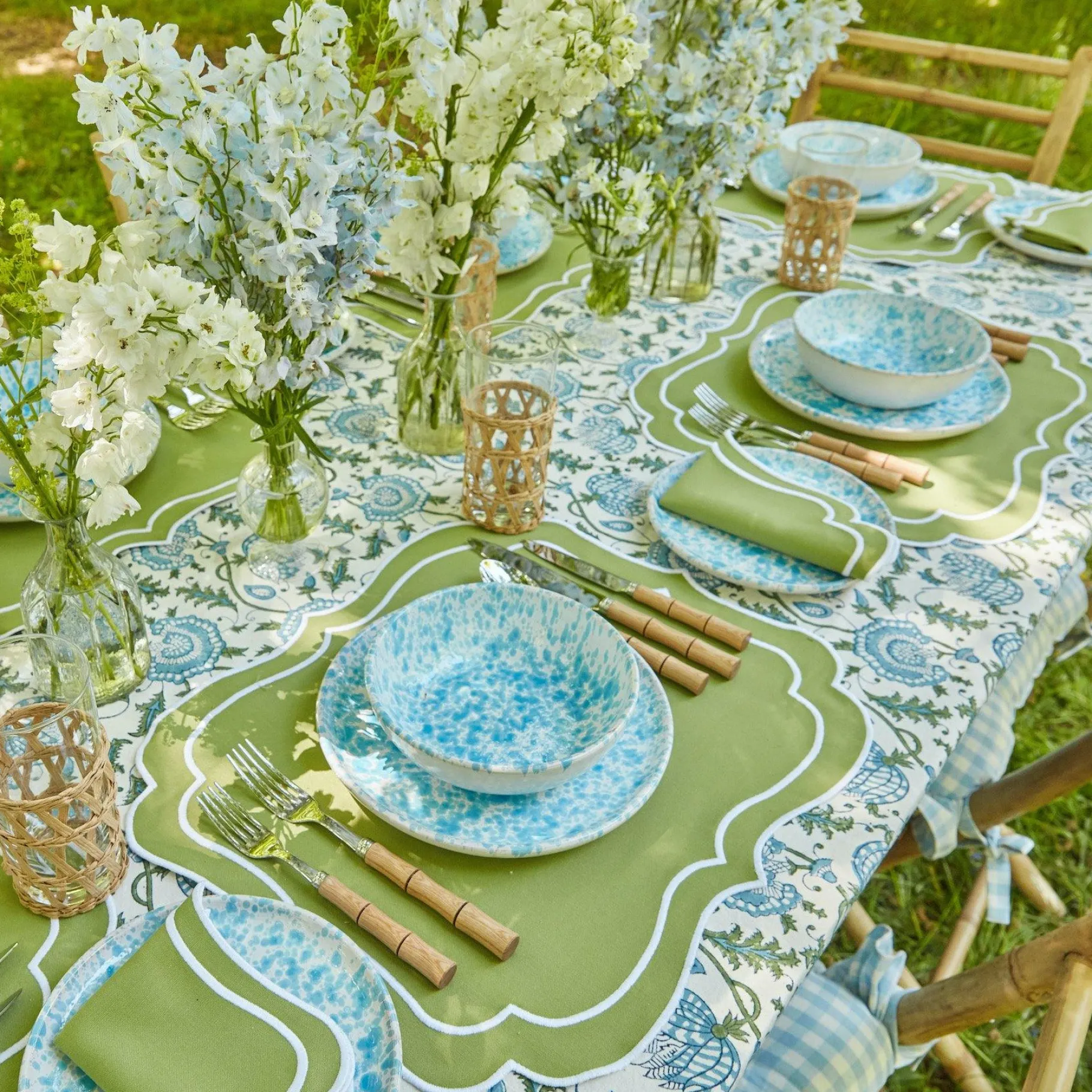 These Classic Spring Green Placemats And Napkins Have A Sophisticated Double Embroidered Edge In An Elegant Arabesque Style.Paired With Our Gardenia Rose Tablecloth, Serena Cabbage Dinner Plate They Look Chic Laid With Our Rattan Cutlery.One Set Includes:X 4 Sylvie Green Embroidered Placemats (48 Cm Wide X 38 Cm Long)X 4 Sylvie Green Embroidered Napkins (38 Cm Wide X 38 Cm Long)Product Info: 100% Cotton.Care Instructions: Wash On Delicate Cycle. Do Not Tumble Dry. We Offer The Option To Personally Bespoke Your Napkins With Our Mrs. Alice Monogram Service. If You Would Like To Opt For This, Please Enter Up To 2 Initials In The Box Provided. Please Allow An Extra 7-10 Days From The Time Of Your Order For Monogramming.