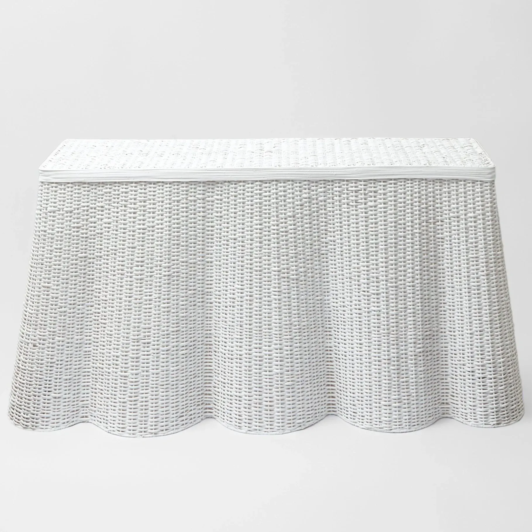 Mrs. Alice Tables|White Vivienne Rattan Scalloped Console Table