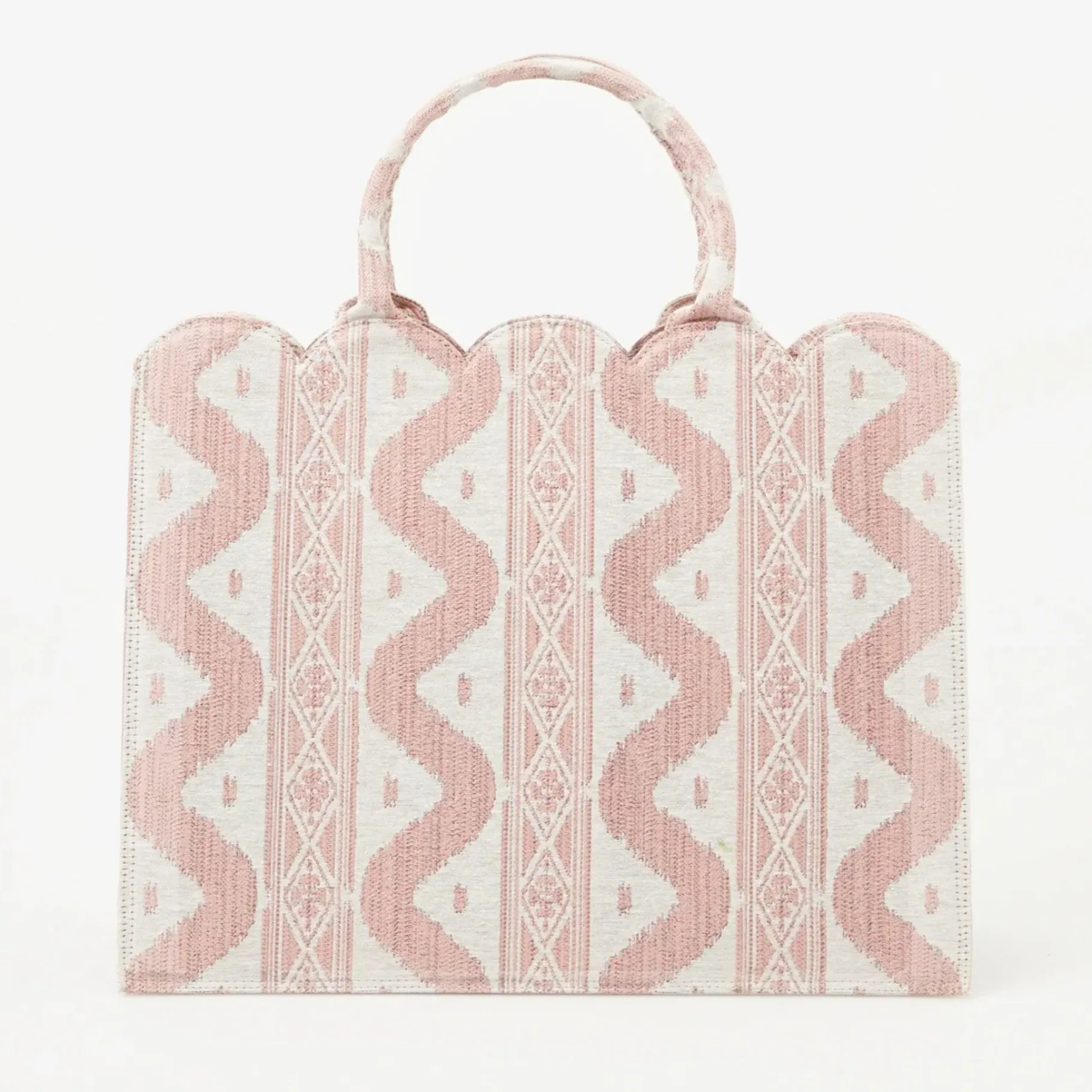 Our Exclusive Mrs. Alice Tote Bag Comes In A Stylish Pink Ikat Stripe.Chic And Scalloped, This Elegant And Spacious Tote Is Made With Sturdy And Structured Woven Fabric.Size: H 35Cm W 18.5Cm L 42Cmcare Instructions: Spot Clean As Necessary With A Damp Cloth.